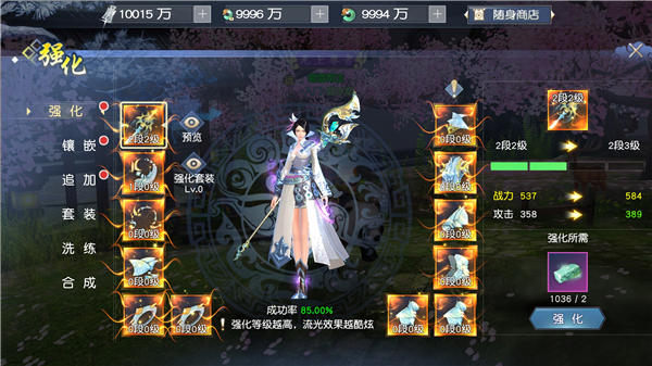 4)强化过程中存在成功率,失败将消耗材料但保留当前等级;