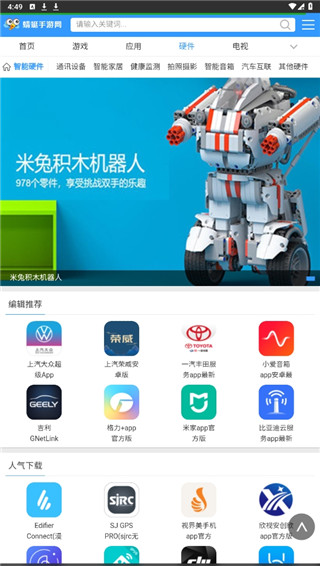2、在游戏板块中,有编辑推荐、人气下载等,你可以下载各种游戏