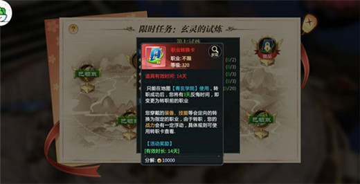 第二、任务时间:任务激活后需要再10天内完成。失败将不能获得转职卡。