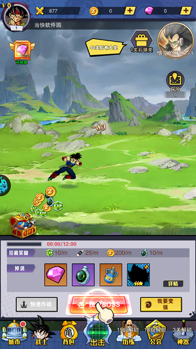 仙魔战场0.1折版是一款以龙珠为背景的回合制放置手游,在这个游戏里,你会去到一个未来的龙珠世界,那里正面临一个超级大的危险,整个世界都快被毁掉了。为了拯救这个世界,你得去找来宇宙里最厉害的战士,和很多强大的敌人打架,保护这个世界不再受到伤害。