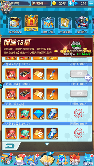 4、升级豪礼,保送直升13星;