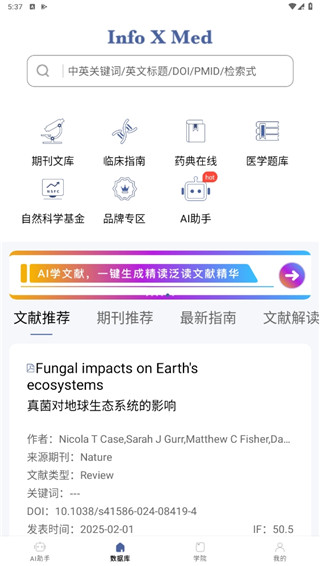 pubmed中文版现更名为Info X Med,是一款医学领域的文献搜索应用,致力于传递医学国际前沿知识,让医学生们更好的学习。在这里有着千万级别的数据库,收集了来自各个国家的国际权威文献、临床、指南等资料,无论你想要观看什么文献内容只需要搜索关键字即可一键搜索其相关的医学知识,非常的方便。同时,软件还提供了一个庞大的医学题库,25类学科10万+的医学题库满足不同用户的不同需求,让你可以随时随地开始刷题学习。