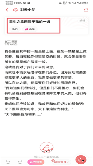 彩云小梦免费版的人物创建是一大亮点,你可以通过输入人物的故事、性格、性别等词条创建一个独一无二的虚拟人物,系统会快速根据你输入的内容进行创建,非常的智能。感兴趣的朋友快来本站下载软件,开始享受与虚拟人物聊天的乐趣吧。