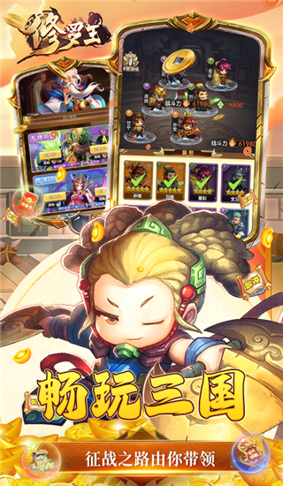 修罗王手游官方版是一款三国策略卡牌手游,游戏采用了顶尖的虚幻引擎打造,以经典的三国故事为题材,将玩家带入到一个真实的三国世界中,在这里玩家将化身为一方诸侯,带领着自己的武将们四处征战,掠夺领土打造一个庞大的帝国。游戏中有着上百位三国角色武将,其中有关羽、吕布、曹操、张飞等,不同的武将有着不同的技能和属性,其供分为枪、骑、弓、谋、车五大兵种,兵种之间相互克制,玩家可以根据兵种克制的关系搭配阵容进行战斗。