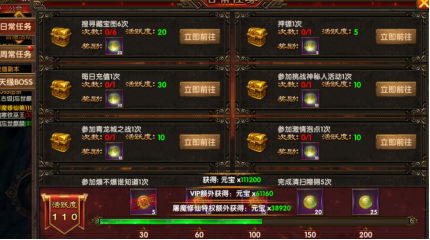 4.每日任务跟每日活动是不用说的,每天都最好全部完成!得到的活跃到可以去玩闯天关,闯天关是一个给等级丹很多的地方,可以让你升级很快!