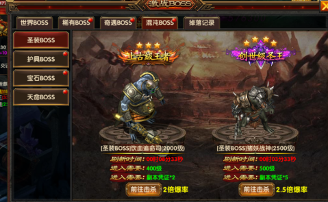 8.混沌boss,刚开始的新手可能打不赢,到后面能打赢的一定要去打,圣装boss给圣装碎片,用于合成圣装,护具boss爆的护具,宝石boss爆的几级几级宝石,最后一个天命boss有概率爆命星,命星用于打架很需要,最高三级命星!