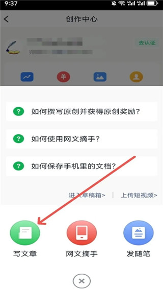 3、最后点击文章,此外软件支持发随笔、网文摘手