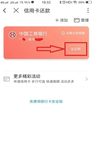 4、在这里可以看到你的信用卡信息,点击去还款选项