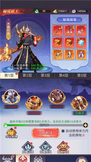 角色一转三重开启,副本中每3分钟需要消耗2点体力,击杀妖王消耗10点体力。