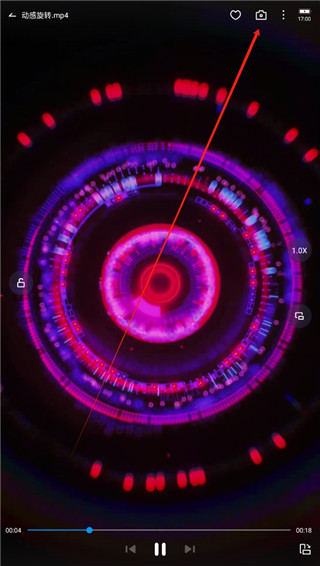 2、在视频播放界面中,点击屏幕中间,再点击右上角的相机图标