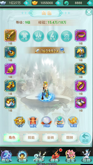 3、在主角面板中玩家可以对主角进行培养,包括穿戴装备、学习技能、上阵坐骑、穿戴羽翼等,修仙世界有的玩家都可以在这里体验。