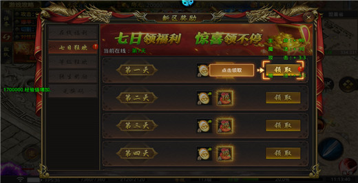 4、在新区奖励,连续登入七日,惊喜领不停哦