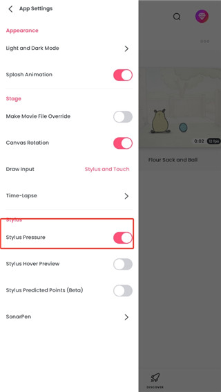 flipaclip动画制作app官方版怎么启用触摸压力选项