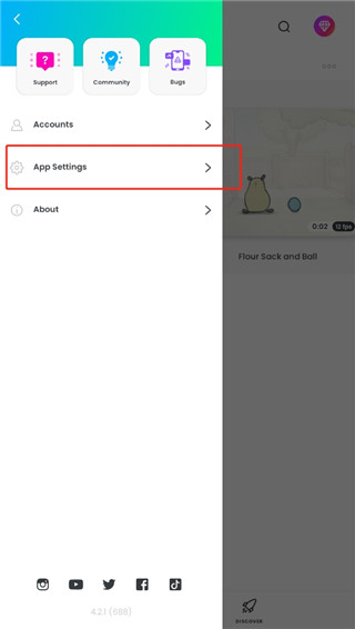 2、在功能栏中,选择app settings选项