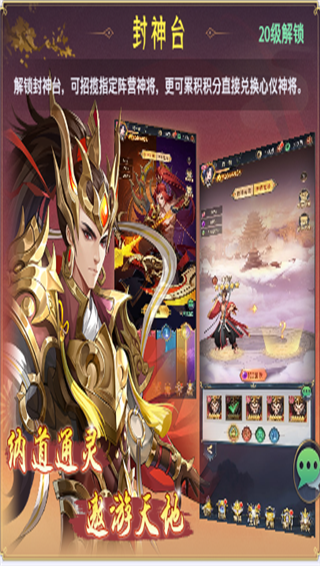 一、封神台系统在封神台系统中,可消耗封神符,指定种族神将进行召唤,还可获得封神积分,直接兑换指定神将,种族养成更直白简易。