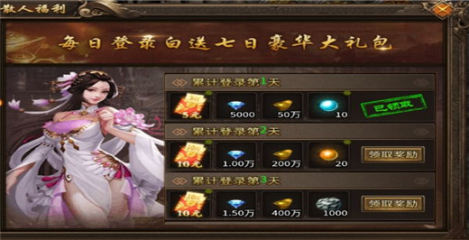 6、另外,玩家首次登录会送真充卡使用后可以领取首充福利