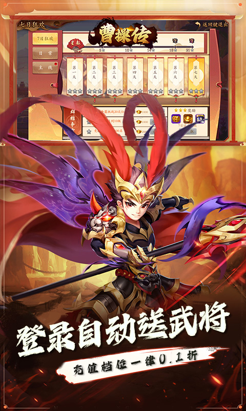 曹操传安卓版是一款以三国故事为题材的放置卡牌冒险手游,游戏以精美的画质、可爱的人物形象设计,迅速吸引了大量的粉丝群体。游戏的玩法非常简单,玩家将通过收集武将并搭配阵容战斗即可,在对局中玩家甚至不需要手动操作,武将们会自动战斗。虽然玩法很简单,但是想要顺利的击败敌人可并不简单,游戏非常考验玩家的阵容搭配能力,武将的站位,上场战斗的武将都将会影响战斗的结局,这样不仅增加了挑战性,还可以为玩家带来策略的乐趣。此外,为了帮助玩家们更好的体验游戏乐趣,平台会赠送大量的福利礼包,元宝、升级材料、强化材料、武器等超多奖励可以免费领取,非常的良心。喜欢三国题材的朋友千万不要错过这款游戏,快来本站下载吧。