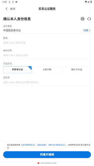 3、可以看到软件支持手机号、人脸、银行卡三种认证方式,你可以随意选择一个进行认证