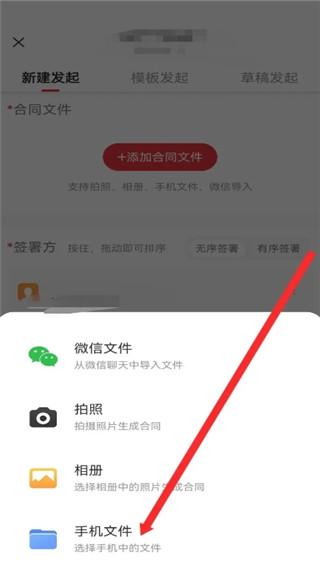 2、软件支持微信文件、手机文件、拍照等方式导入合同,小编这里选择手机文件