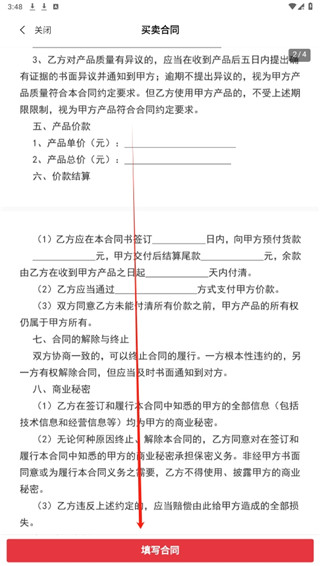 3、这里可以看到该合同的具体内容,点击下方的填写合同