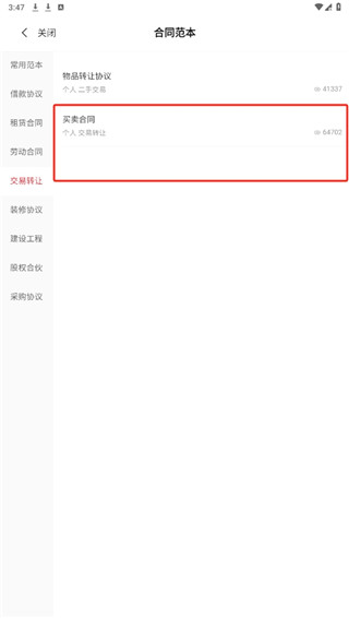 2、这里可以看到有许多类型的合同范本,选择买卖合同