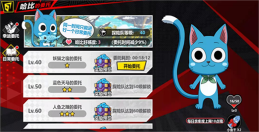 除了幸运委托外,还可以接受日常委托任务。在日常委托中同一时间只能进行一个日常委托,随着探险对达到更高等级,可解锁星级更高的委托,获得更多的奖励。