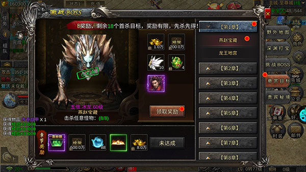 6、挑战BOSS完成后,不仅可以拾取到装备,系统还会发放发发的奖励