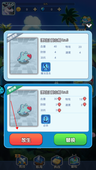 4、对于属性较弱的重复宠物,可选择放生。