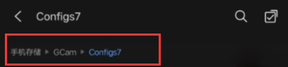 2、在相机设置中,点击配置文件选项,随后在文件夹中找到GCam/Configs7 文件目录,并将格式.xml的文件复制到这个目录中