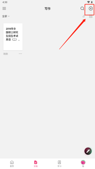 2. 在页面右上角找到并点击+号。