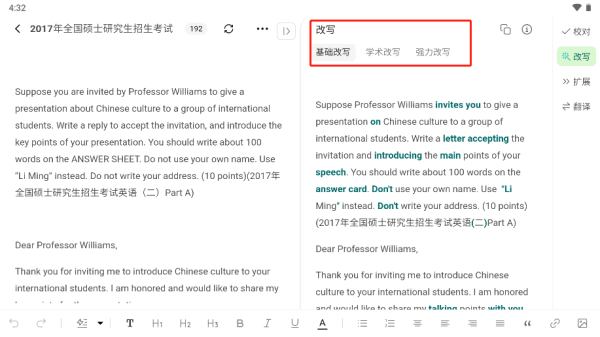 火龙果写作软件官方版怎么进行改写