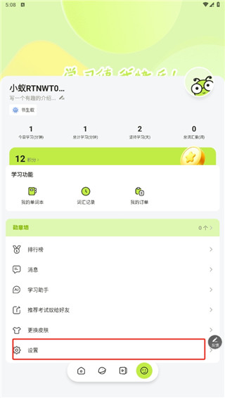 1、打开下载好的app,点击下方笑脸图标,再点击设置选项