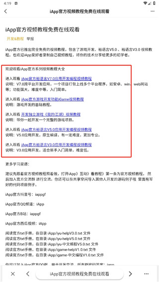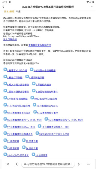 2、在教程的界面中,我们可以看到有许多类型的应用开发教程