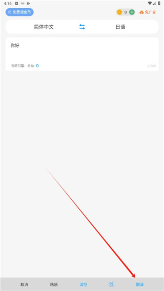 1、打开下载好的app,输入中文,点击下方的翻译选项
