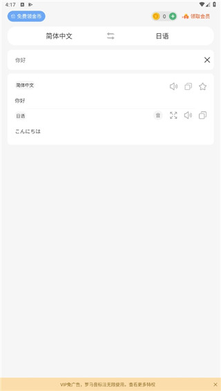 2、系统会扫描你输入的中文,并进行翻译,你还可以听到最正宗的日式发音