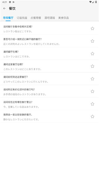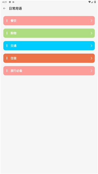 2、在该板块中可以看到有许多不同生活场景中的用语,如餐饮、交通、住宿等