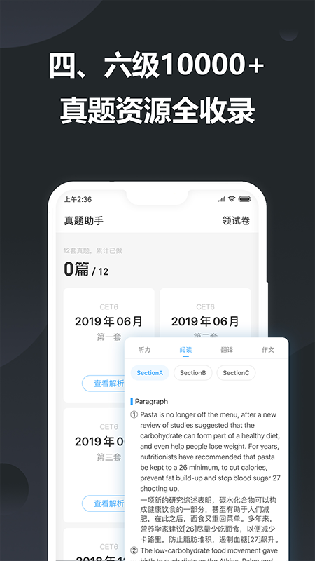 1、真题助手:历届真题,在线权威解析,一键免费打印。2、海量词汇:内置超大量词库,英汉词汇,英汉翻译词汇,英汉翻译例句。