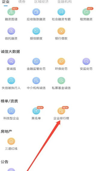 3、在更多中,找到并点击企业排行榜功能就可以查看到详细的排行了