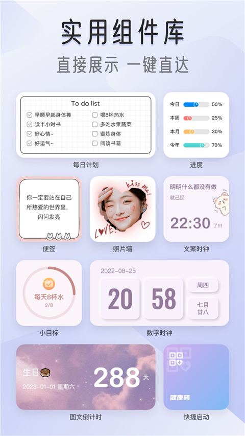 1、打开本站下载的app,可以看到系统推荐的许多有趣的小组件给你