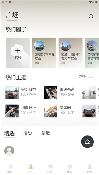 2、在社区中有许多的社交圈子,如威客圈、用车日记等,你可以与网友们进行交流