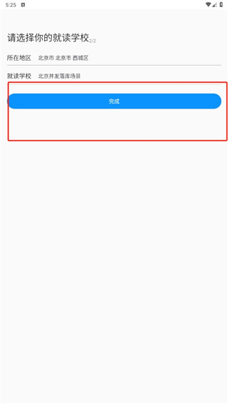 4、最后选择你所在的城市和学校后,点击完成就好了