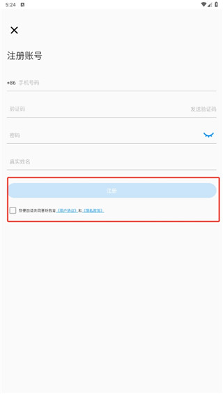 2、输入你的手机号、验证码、身份信息后,点击注册