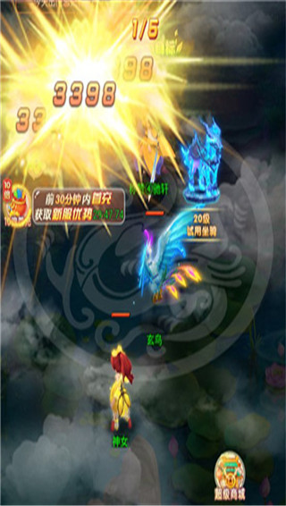 1、加入即送顶级橙将:孙悟空、牛魔王、二郎神等神将任你选择。2、战斗策略丰富,告别单调,合击技巧决胜千里。