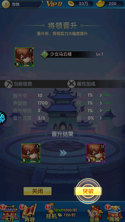 5、在【阵容】中进行升级、突破、升星、布阵、换装等