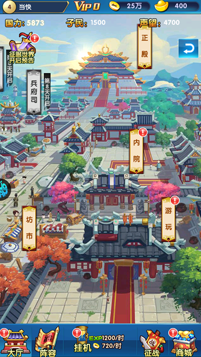 8、探索游戏中的坊市、祭坛、排行榜、主城、个人BOSS、征战等丰富内容