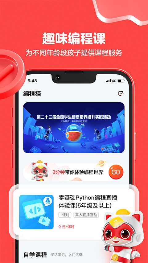 编程猫app最新版是一款非常好用的儿童编程学习应用,软件提供了海量的学习课程,从简单的入门教学到复杂的计算机编程这里全都有,帮助孩子从零开始学习编程。这些课程的设计非常巧妙,可以更好的激发孩子的想象力从而更好的学习。同时,软件每天都会根据你的学习进度来推出课程,完成学习后可以获得积分和奖励,从而激励孩子不断的学习,提升学习兴趣。