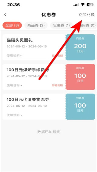 4、最后输入你的兑换码后点立即兑换就可以兑换优惠券了