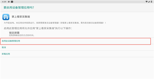 3、系统会自动跳转到你的手机设置中,点击启用此设备管理应用