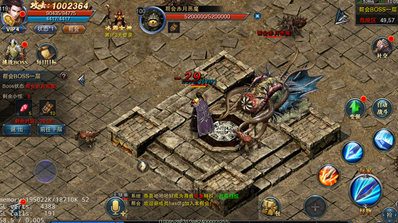 定期开启的帮会BOSS活动,每周三、六晚19:30至20:00举行,持续30分钟。共有10层BOSS等待挑战,击败每层BOSS可获得大量装备和帮贡奖励。装备不绑定,所有人都有机会拾取,但需清除当前层所有敌人才能进入下一层。