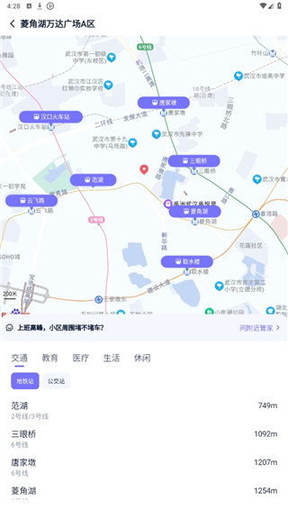 5、并且你还可以查看房源的周边设施,如交通,生活等